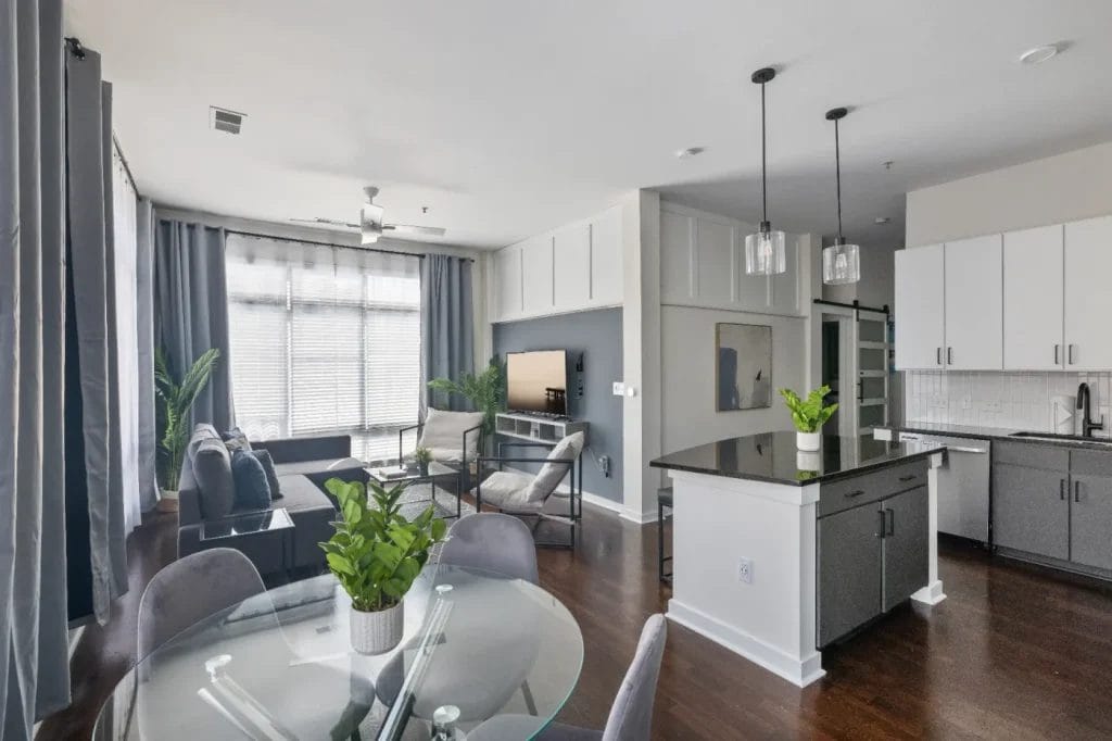 This recent Airbnb photoshoot in Uptown Charlotte for Trifecta Corporate Housing embraced a simple and minimalistic design, highlighting all the essentials needed for a comfortable stay while boasting the convenience of being close to everything Uptown has to offer. What made this shoot unique was the approach I was asked to take—capturing multiple angles of the same spaces. While I typically avoid repetitive shots, it made sense here to showcase various points of view and emphasize the functionality of the layout.