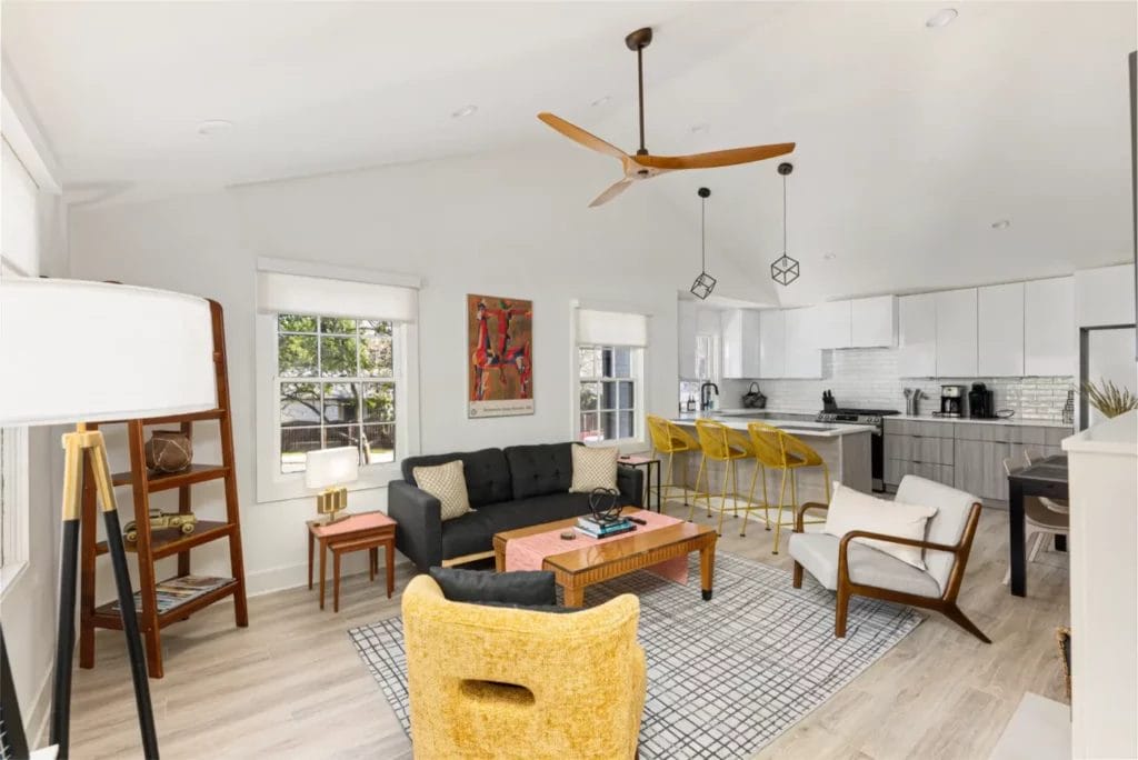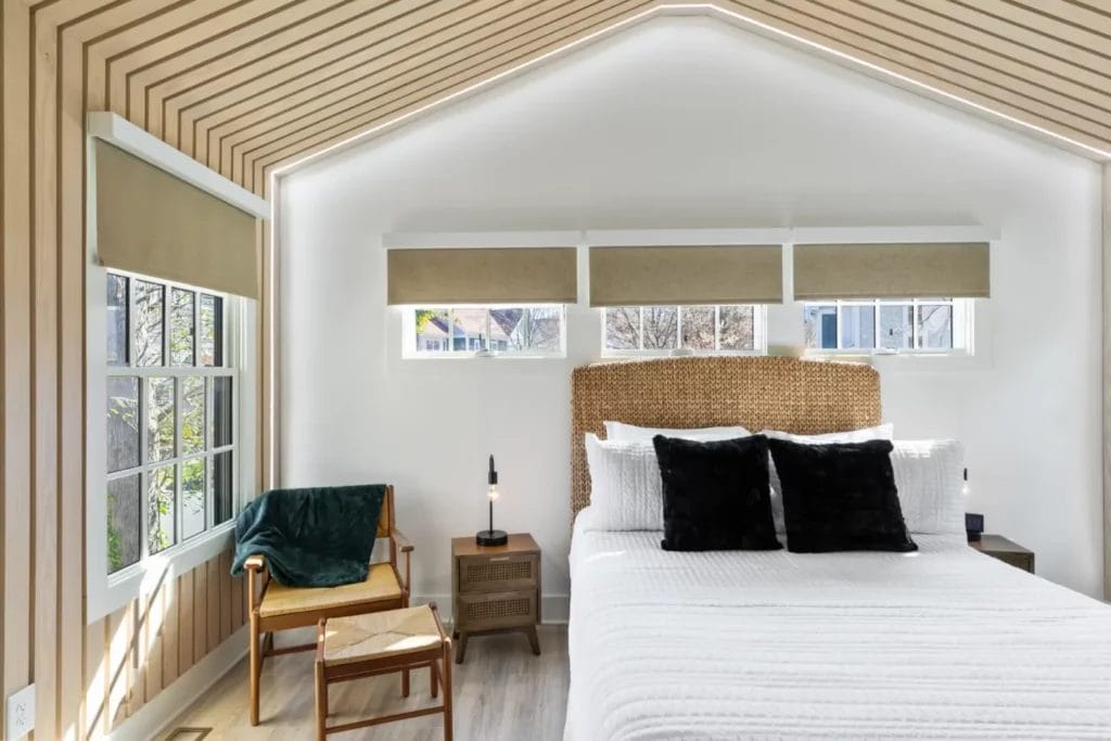 The high ceiling, furnishings, open floor plan, front elevation, bathrooms, wood work, on and on, you just can’t stop witnessing all the unique touches that was created thoughtfully for the best airbnb experience. If you are looking for a cozy modern bungalow near south end charlotte to stay, then look no further.