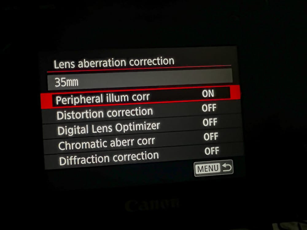 Solution: first setting camera icon menu > Lens aberration correction > peripheral illum corr > turn it off.