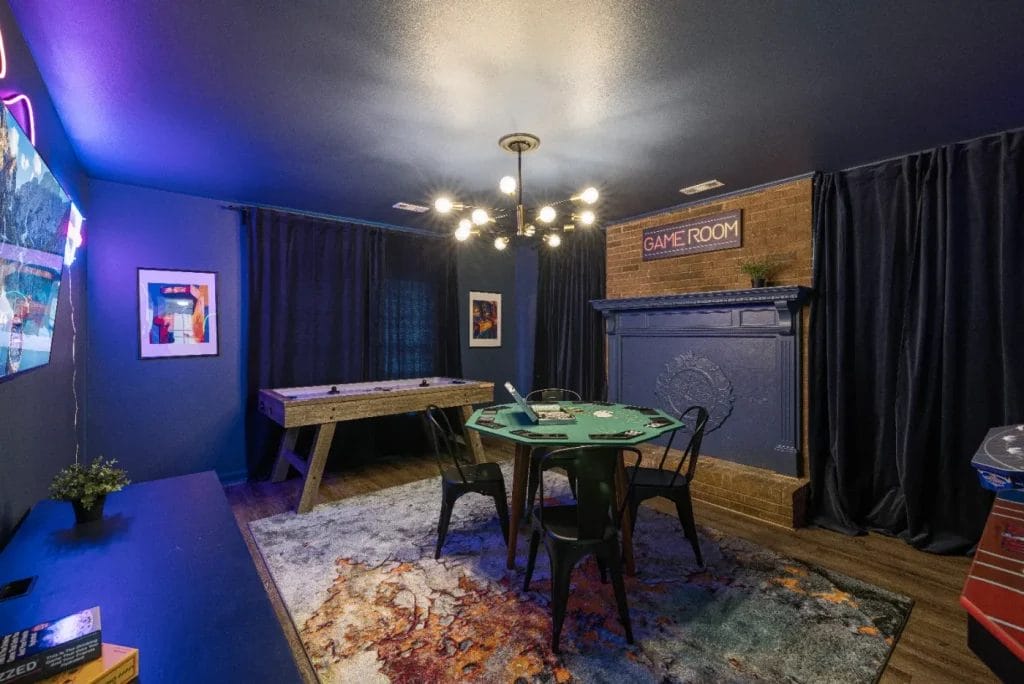The highlight of this home was undoubtedly the game room. Packed with fun games to keep guests entertained, it’s the perfect spot for anyone looking to unwind during their stay in Charlotte. To capture the full ambiance, I used a single-exposure technique to showcase the room in various lighting combinations—LED lights, ceiling lights, and the natural light pouring in from all angles. This approach highlighted the room’s versatility, making it ideal for guests seeking any type of vibe.