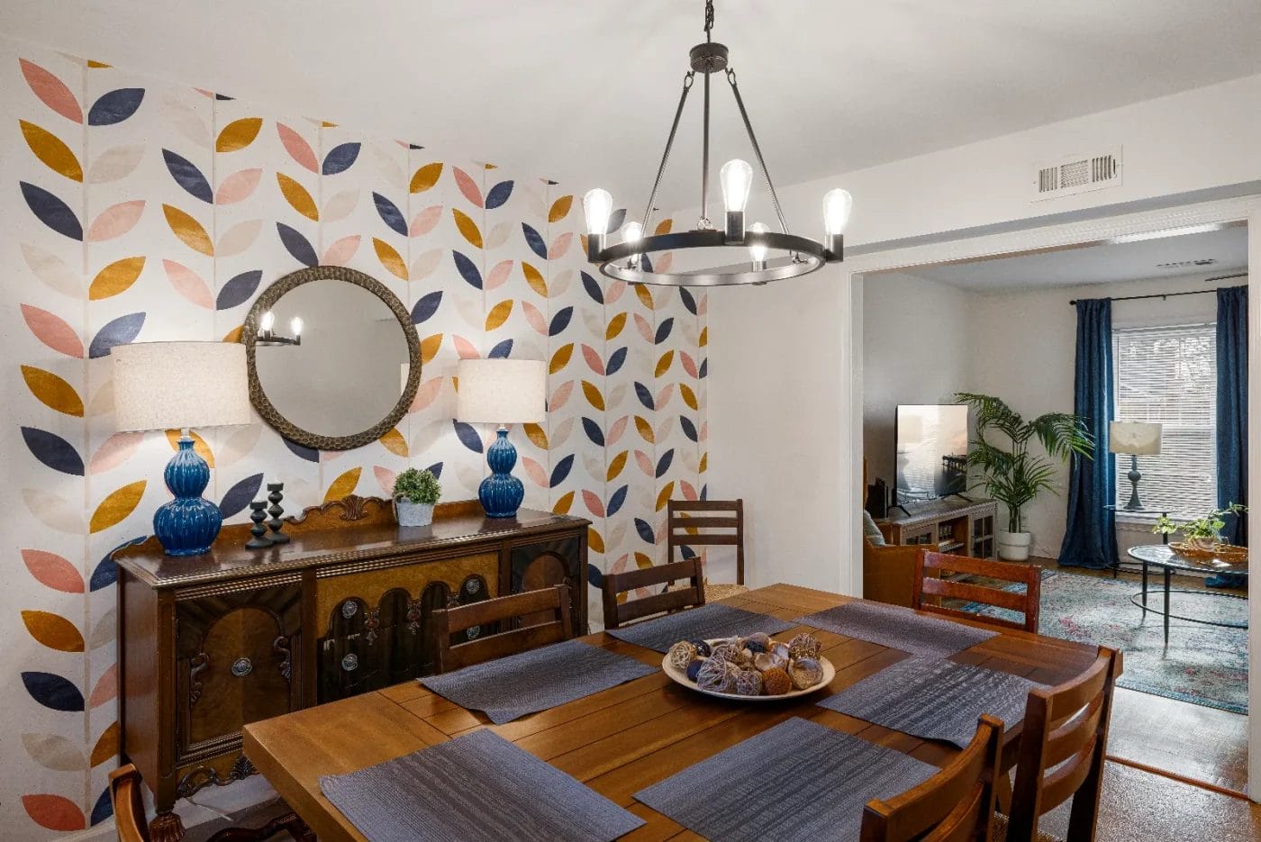 Charlotte, NC, offers a thriving vacation rental market, and capturing these spaces in their best light is key to attracting guests. This recent full-house vacation rental photoshoot was no exception. This airbnb vacation property was thoughtfully decorated with all the essentials and featured plenty of natural light, stunning wallpapers, and a welcoming front elevation that immediately draws you in.